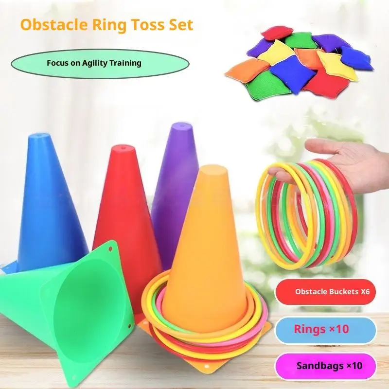 1 Set Outdoor Toy For Kid Adult Party Games Ring Toss Game Carnival Combo Kit Soft Plastic Cones Ring Toss Game