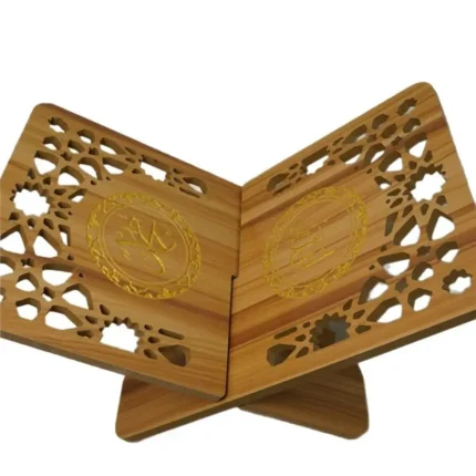 AT43-Wooden Quran Holder Elegant Design With Hollow Out Flower For Desk Organization Storage Space