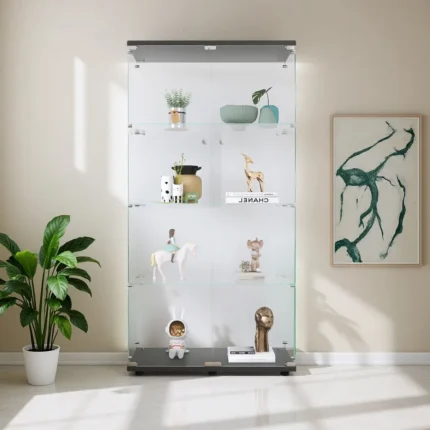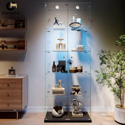 Comanlai 4-tier LED Glass display cabinet,Single/double door,Room Decor,storage shelf/display stand for collectibles,treasures