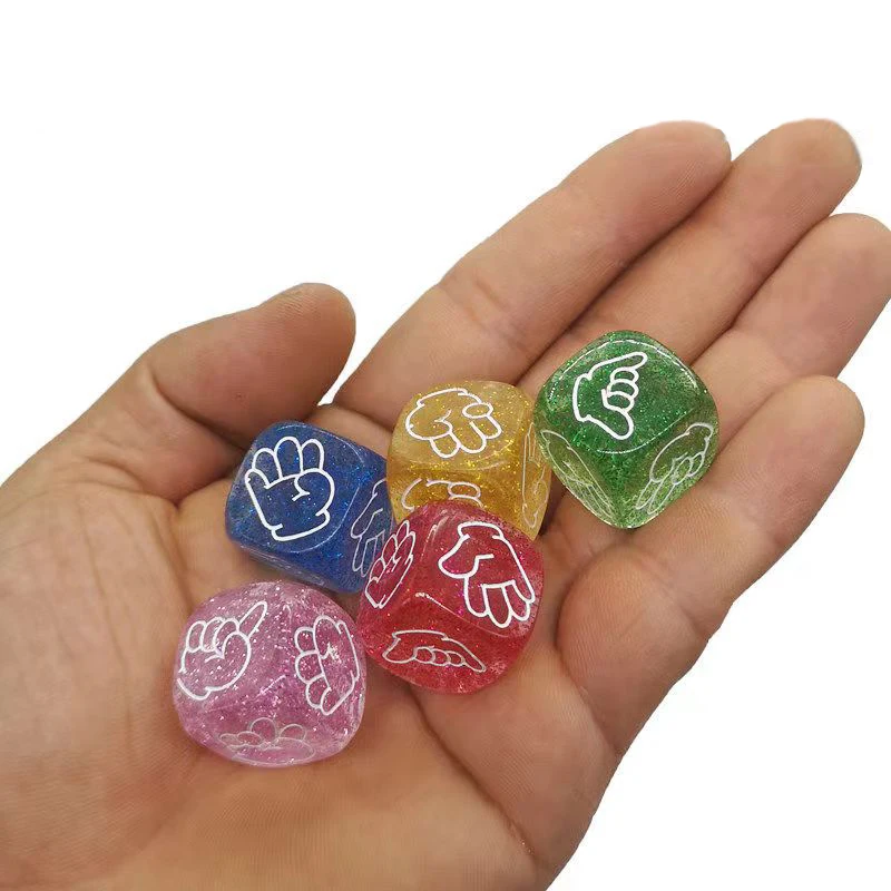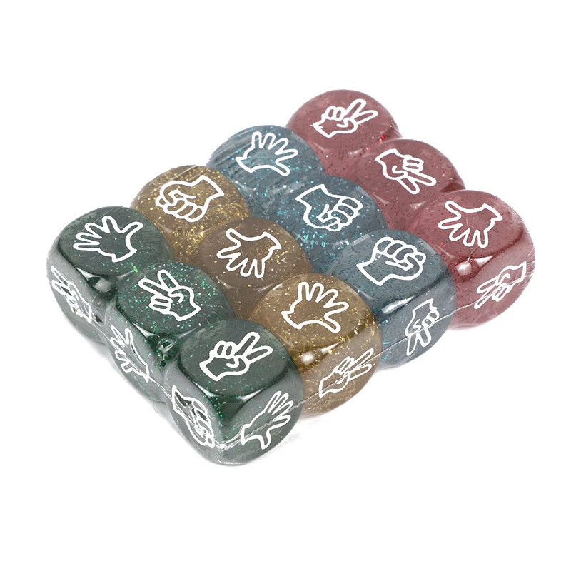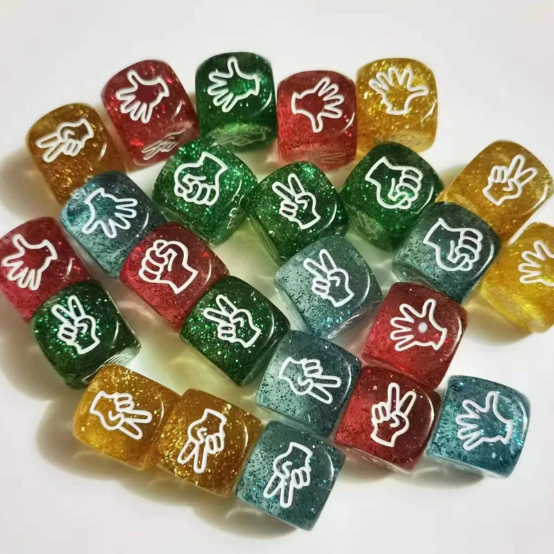 10PCS Glitter Dice 6 Sided 20MM Rock Paper Scissors Toy Party KTV BAR Drinking Games For Adults Juegos De Mesa Divertidos