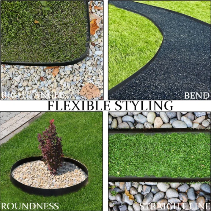 Durable and flexible: Recycled plastic edging can be installed in straight or curved lines; spiral nails withstand frost and heavy rain to keep your design in place