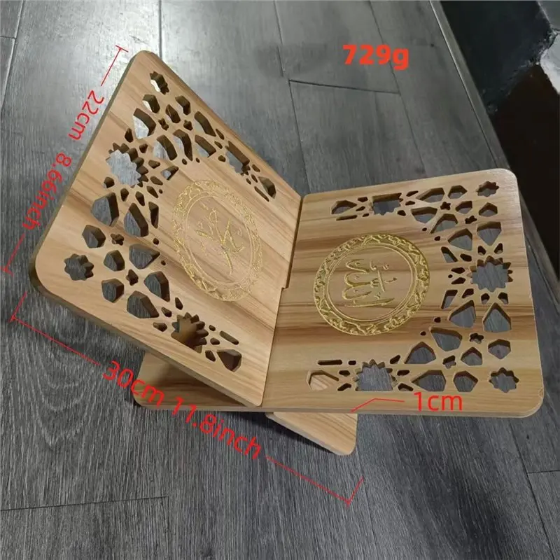 AT43-Wooden Quran Holder Elegant Design With Hollow Out Flower For Desk Organization Storage Space