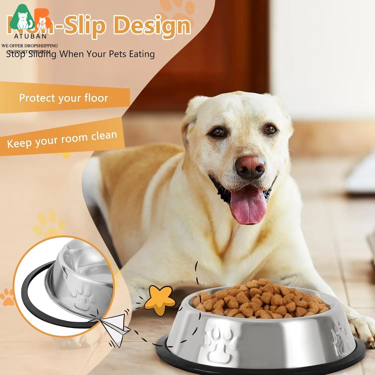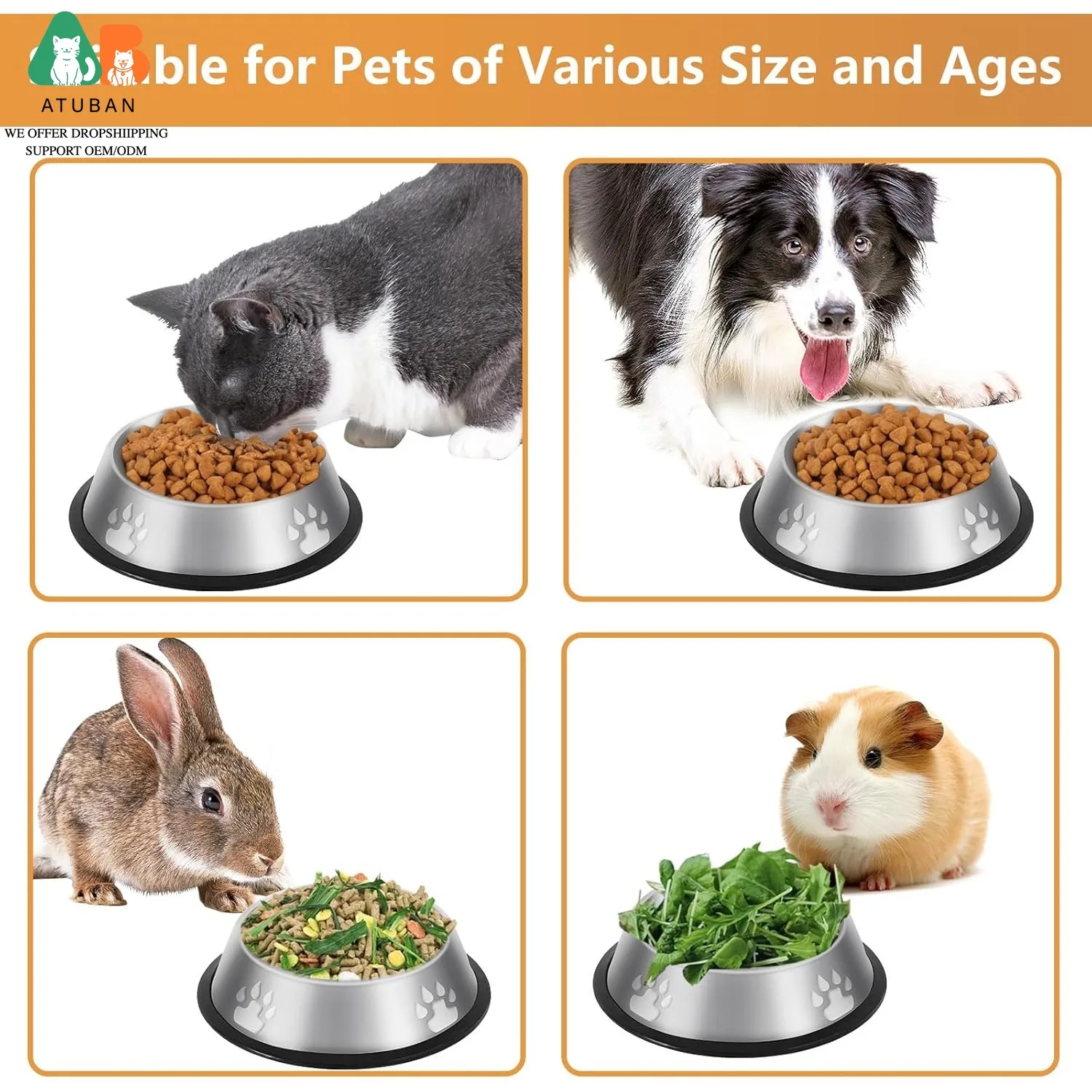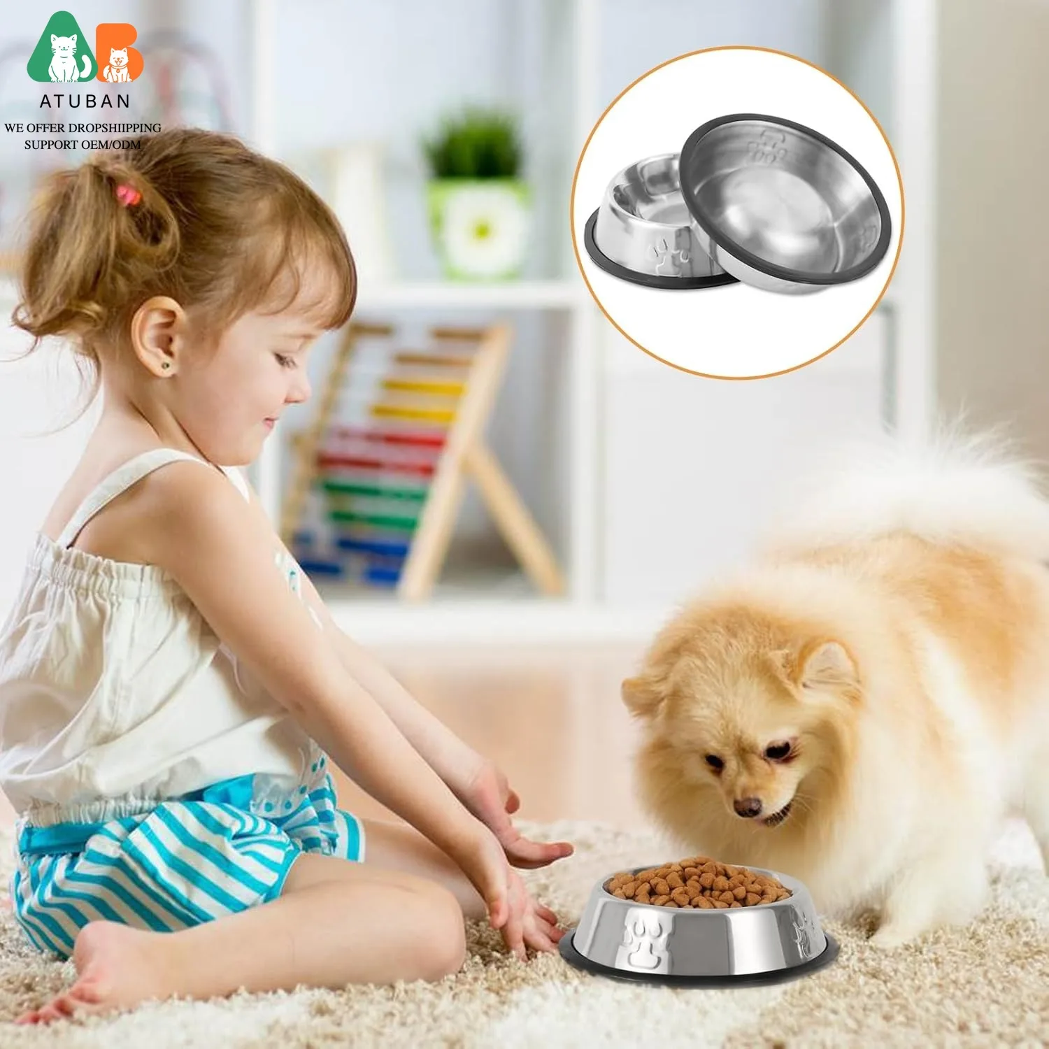 ATUBAN Stainless Steel Dog Bowl,Metal Cat Bowls for Food & Water, Non-Slip Pet Feeding Dish Bowl Rubber Base for Cats Puppy Dogs