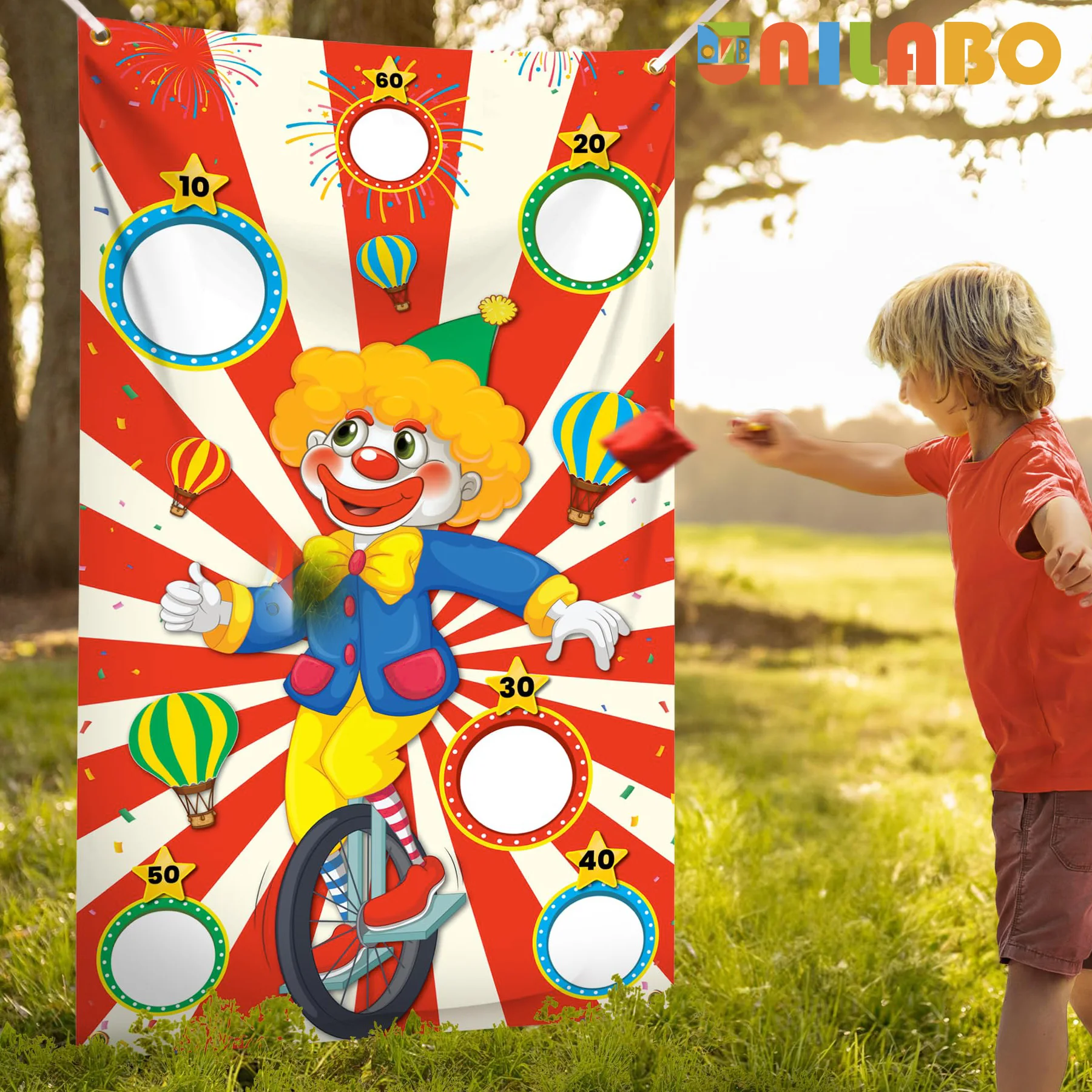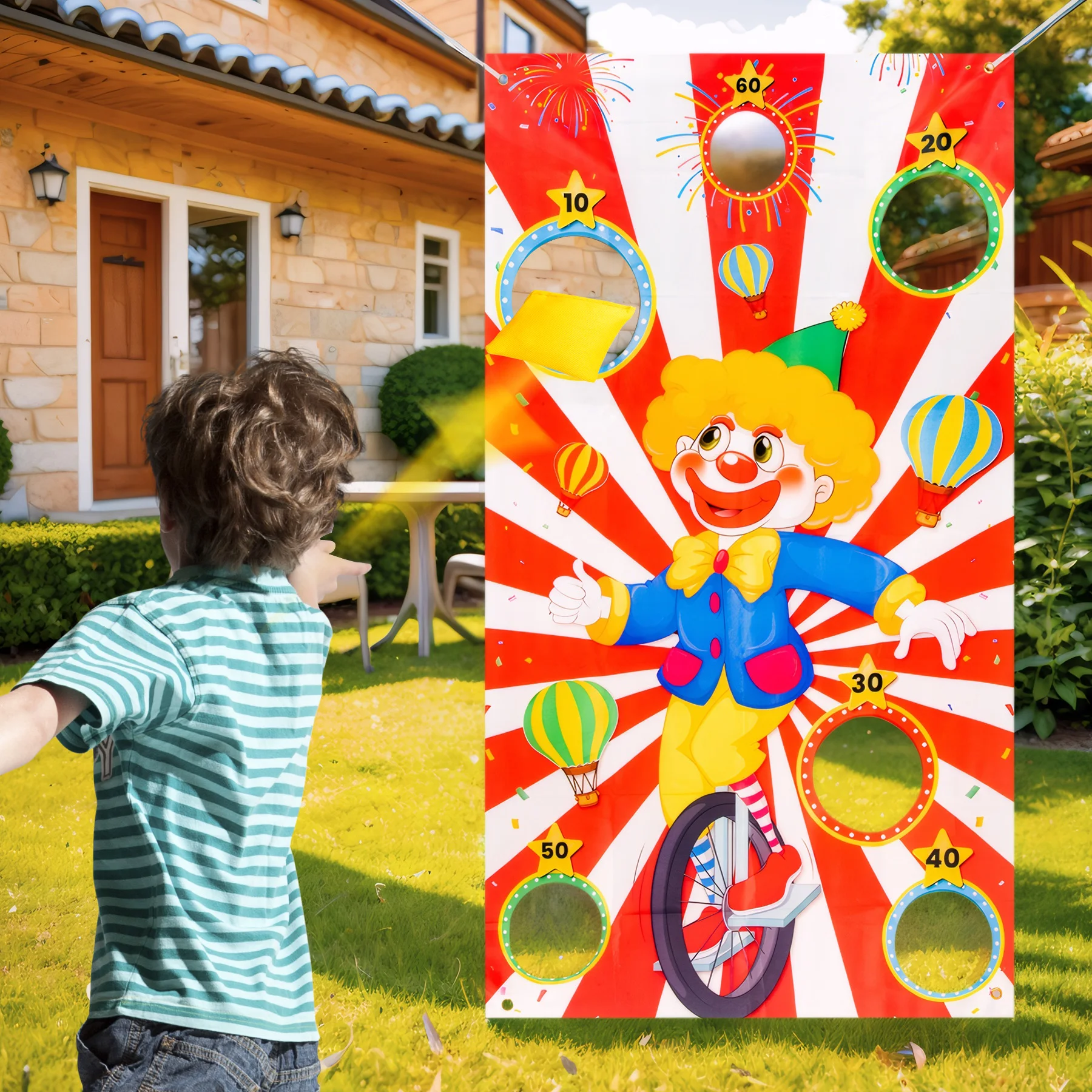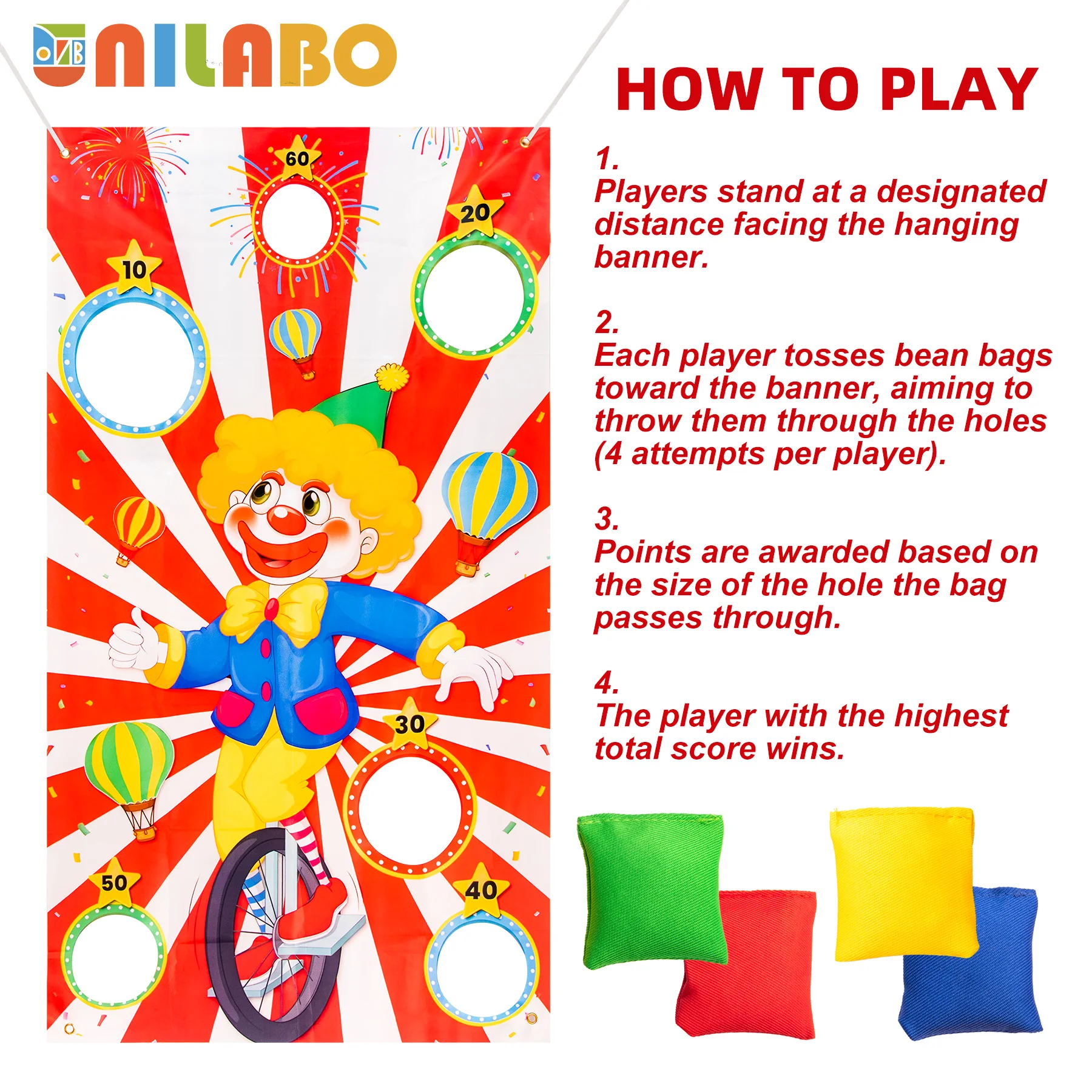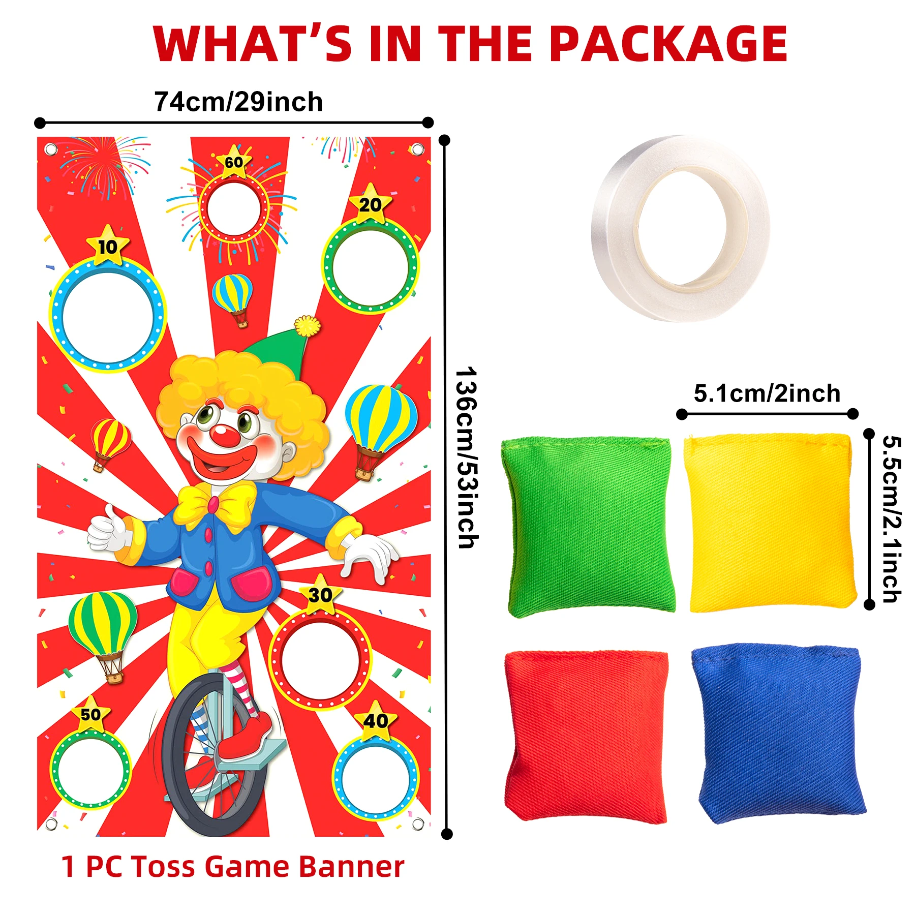 Carnival Toss Game Banner with 4 Bean Bags for Family Indoor Outdoor Activities Circus Theme Birthday Party Decoration Supply
