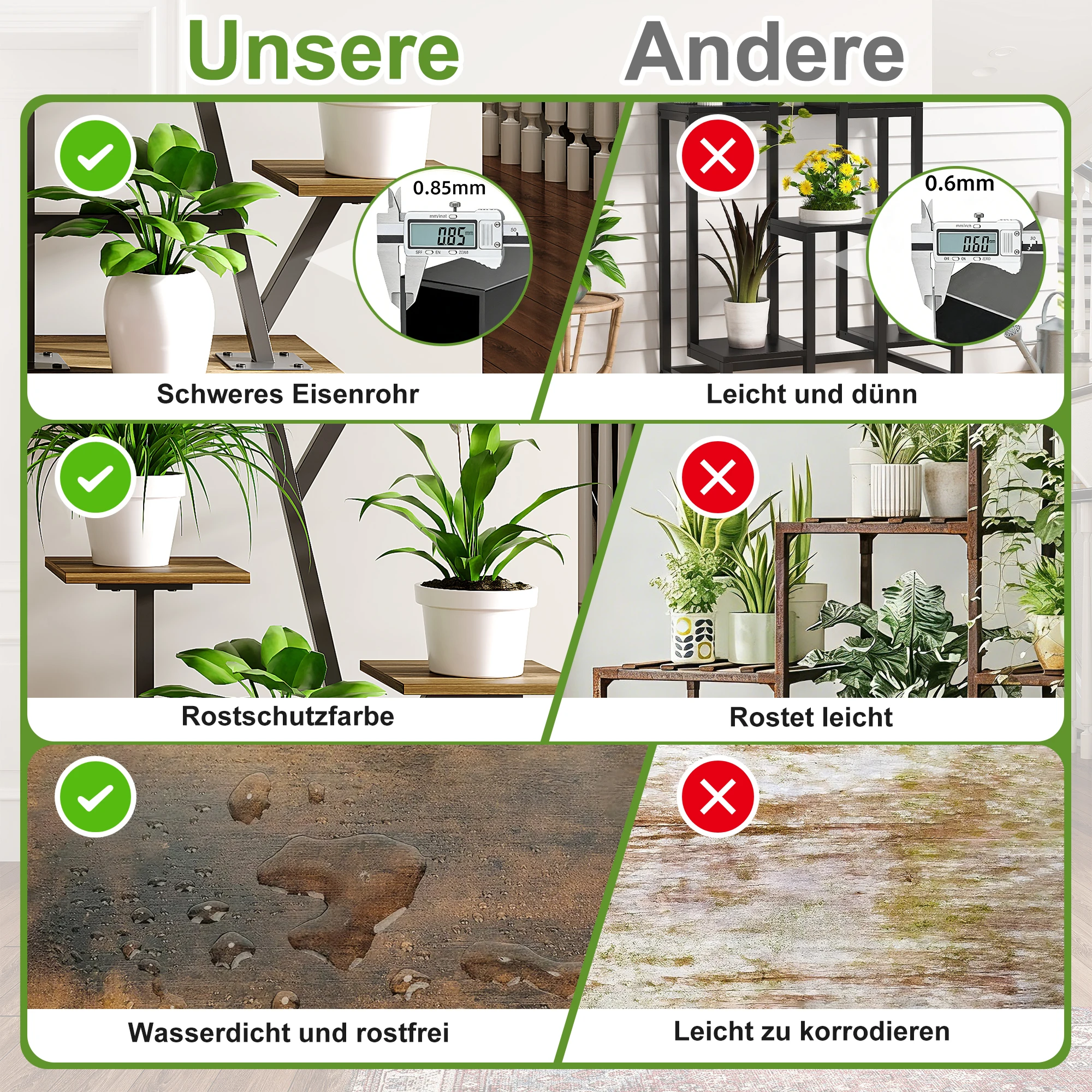 5. High quality materials: Durable and environmentally friendly metal frame and wooden layer frame are used to ensure the stability of the plant frame structure and long-term use. The minimalist tiger skin appearance is easy to match with different home styles.