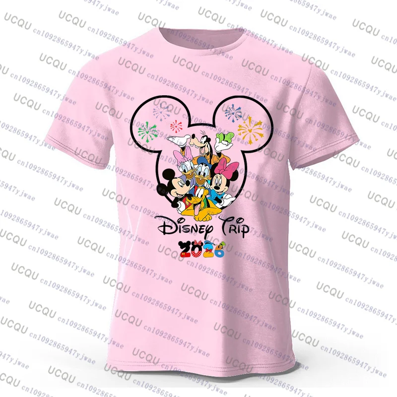 Disney Trip 2026 Mickey And Minne Graphic Print Cotton T-shirt Summer Breathable Family Tees Clothing Harajuku Parent Child Tees