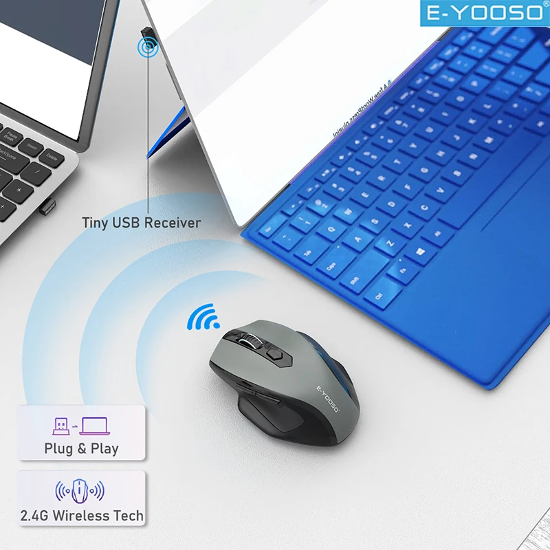 E-YOOSO 2.4G Wireless Mouse Portable Ergonomic Mouse Supports Power-saving Mode and Low Battery Reminder ,for Computer PC Laptop