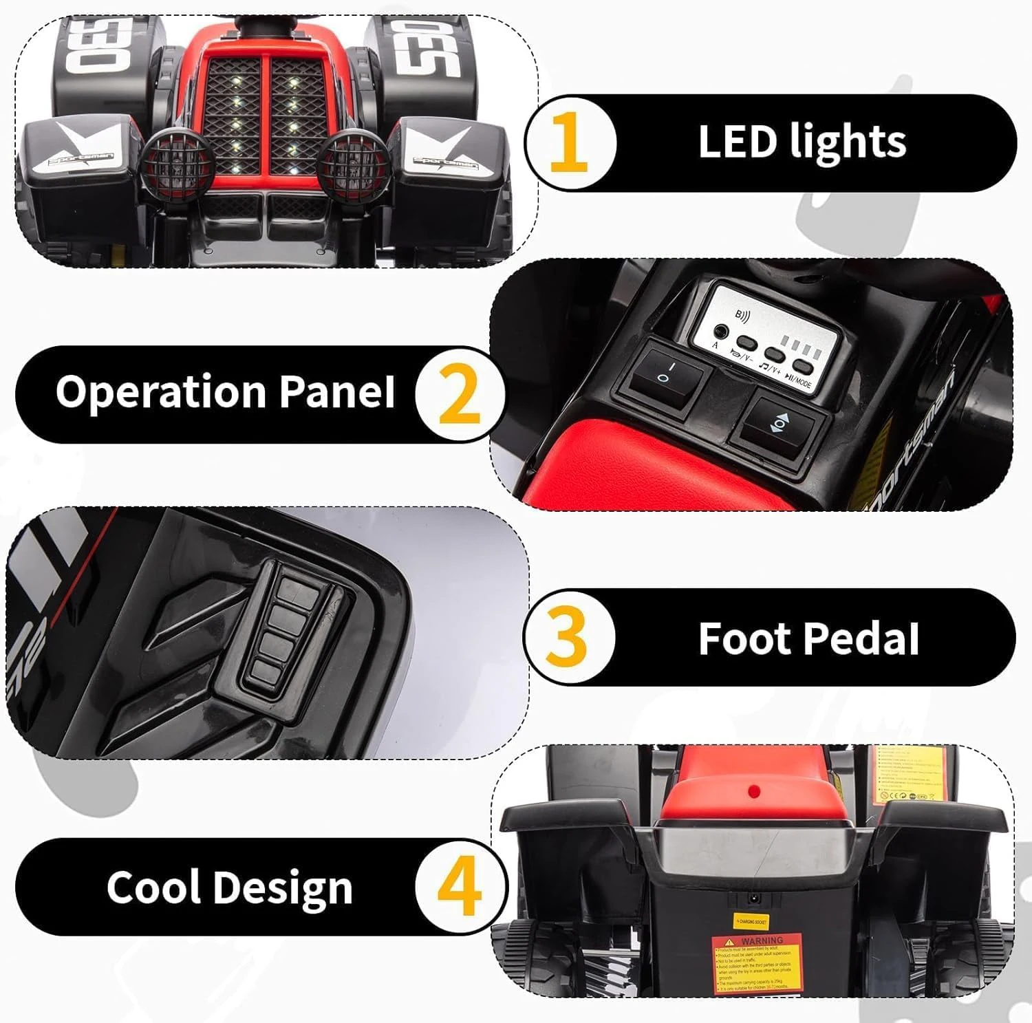 — Robust Material & Proven Safety Made of high quality PP and stable iron, this mini quad will last a lot. The solid construction and proven safety ensure hassle-free play – so parents can breathe deeply.