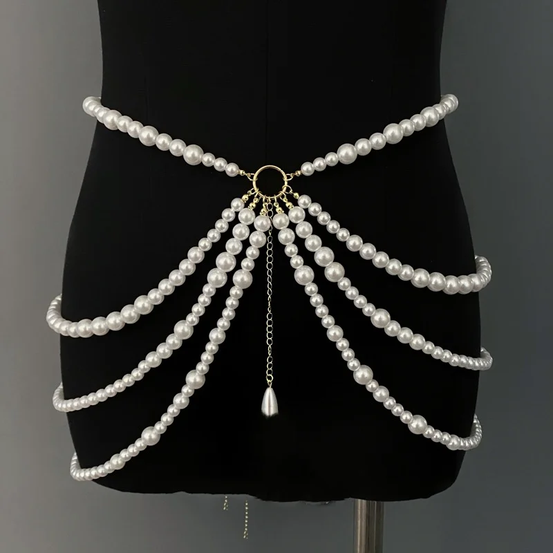 Fairy Tassel Waist Chain For Women Glitter Pearl Butterfly Pendant Belt Strap Dress Crop Top Bikini Sexy Waist Decorative Chain