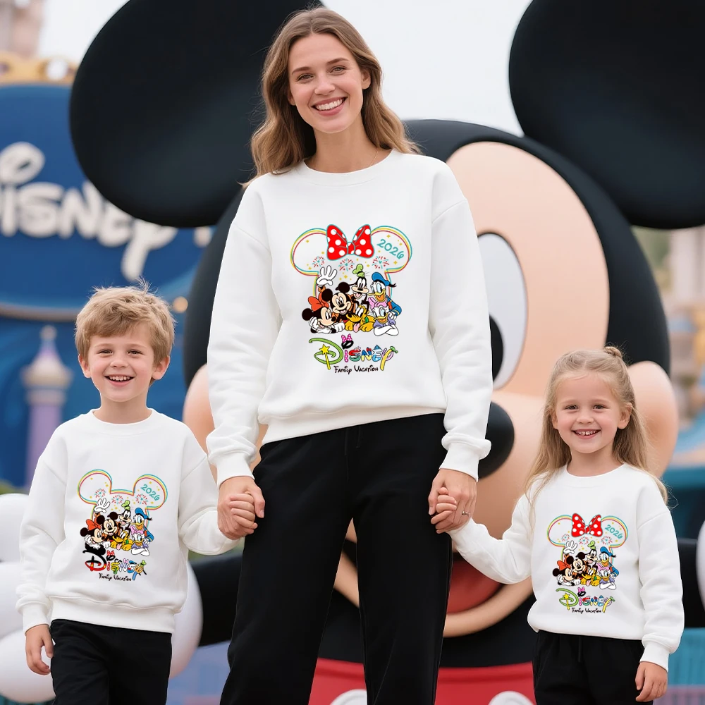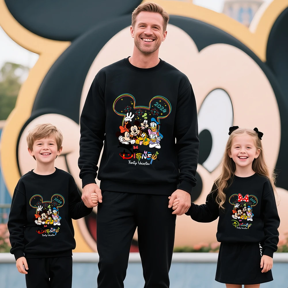 Family Matching Cotton Sweatshirts for Disney Trip 2026 Mickey Mouse Head Print Parent Kid Mother Father Casual Apparel Clothing