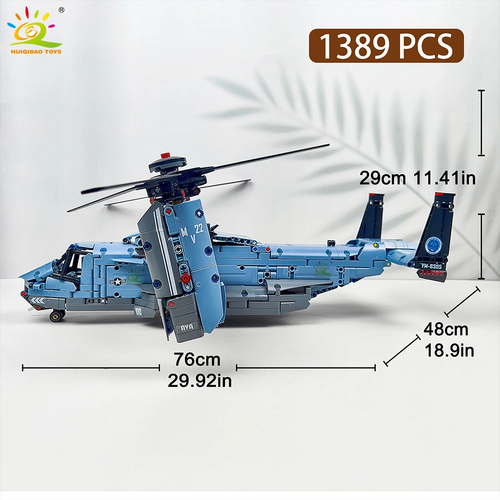 HUIQIBAO MOC 1389PCS V-22 Tiltrotor Aircraft Helicopter Building Block Children Military Airplane model Bricks Toy home Decor.