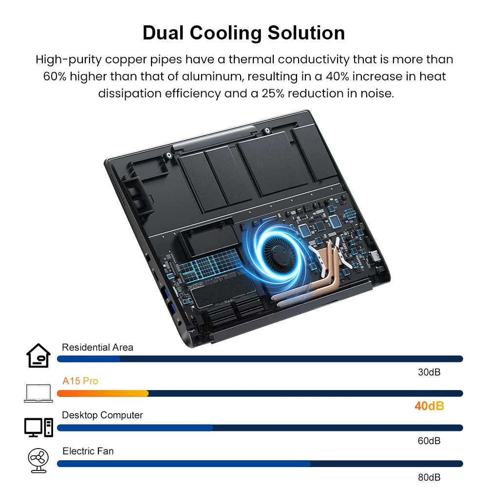 The A15 Pro laptop uses a 4800mAh large-capacity lithium-ion battery and has excellent system-level power management. WiFi 6 and Bluetooth 5.2 bring a stable and smooth Internet experience and fast data connection.