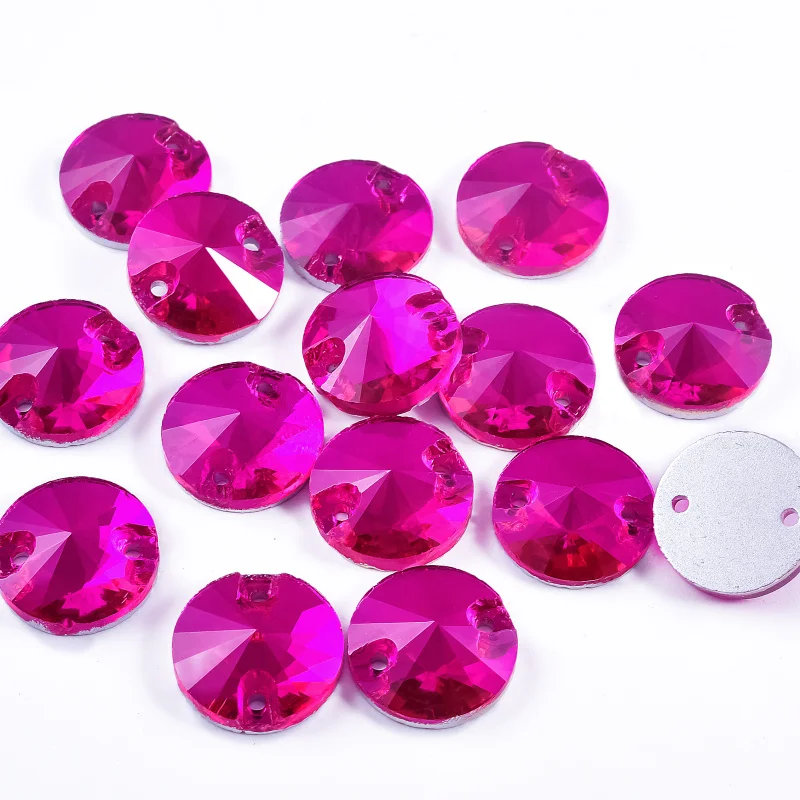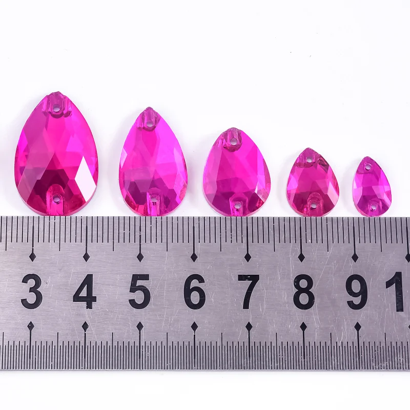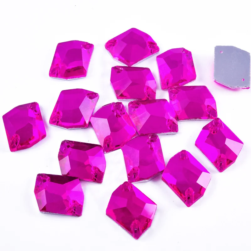 OLeeya Hot Pink Rose Mix Shapes Glass Flatback Sew-on Rhinestone Sewing Strass Crystals Diamond For Wedding Dress Decoration