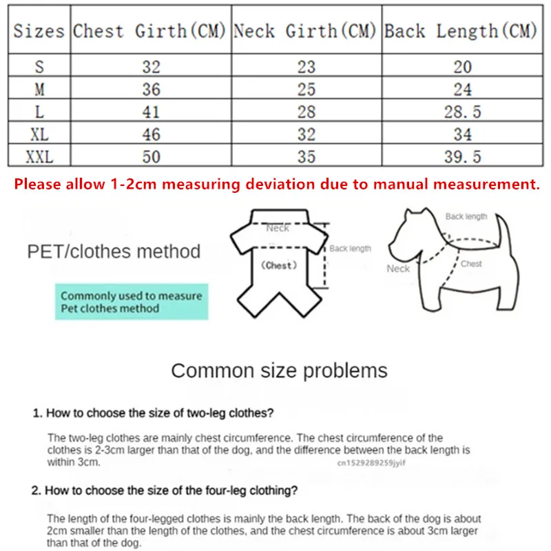 Note: The clothes you choose should be 1-3cm larger than your pet's size.