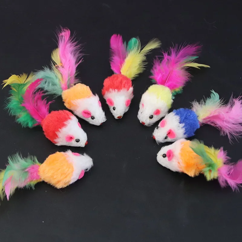 Soft Fleece False Mouse Cat Toys Colorful Feather Funny Playing Toys for Cats Interactive Toys Juguetes