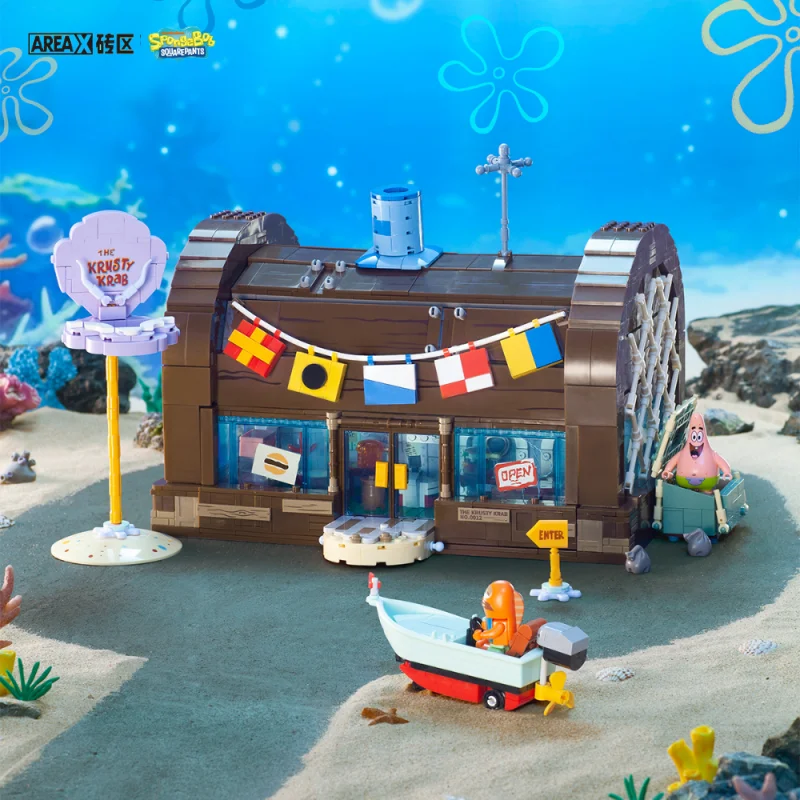 Spongebob building block cartoon Krusty Krab creative restaurant scene model Patrick Star assembly toy children’s birthday gift