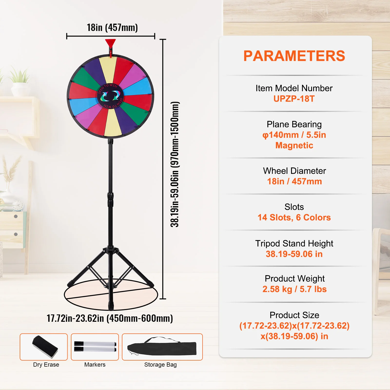 SucceBuy 18 Inch Tabletop Color Prize Wheel w/ Folding Tripod Floor Stand 14 Slots Dry Erase for Win Fortune Spinning Stand Game