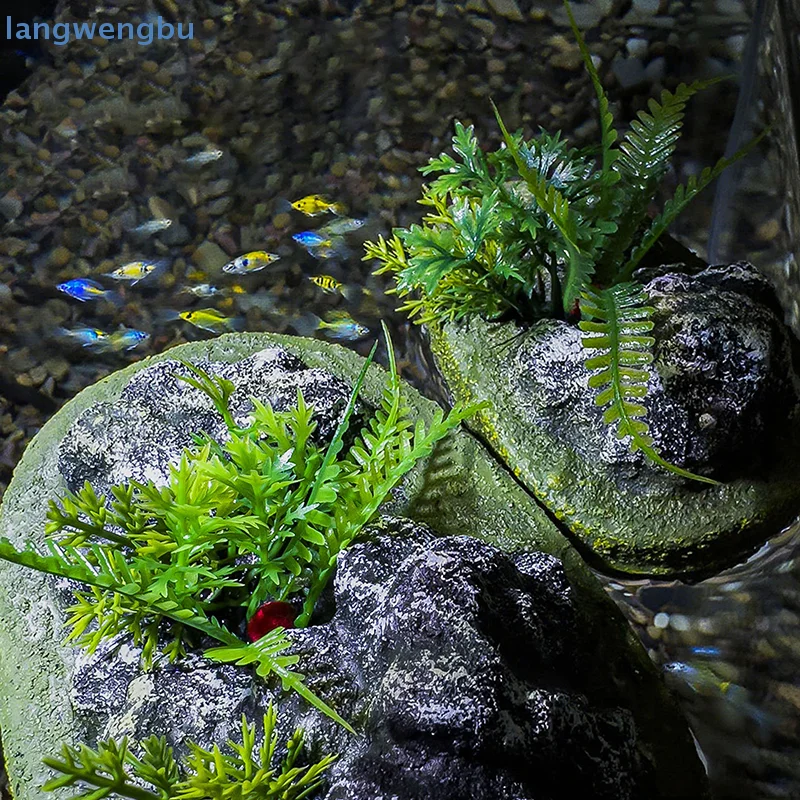 Suspended Island Fish Tank Decorative Creative Floating Stone Simulation Plants Caverns Crafts Ornaments Aquarium Accessories