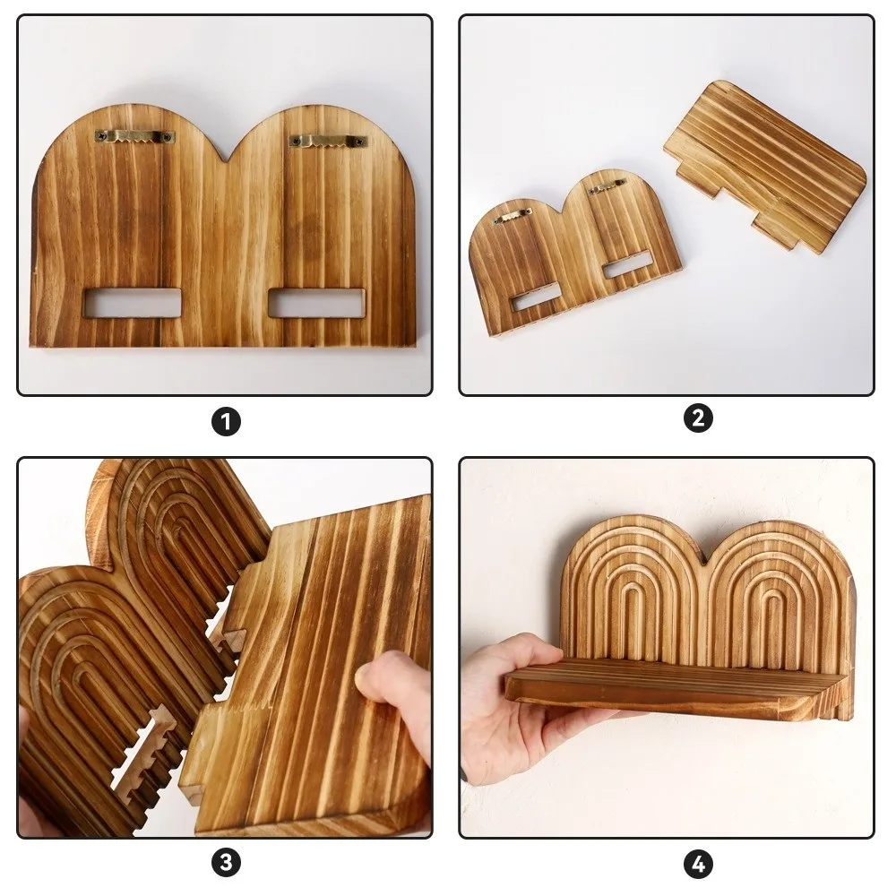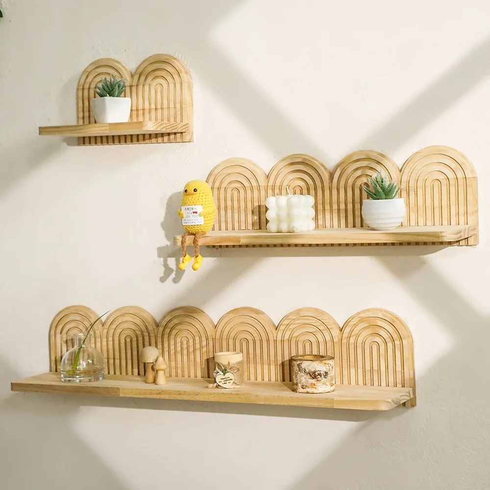 Wall Mounted Boho Wooden Shelves Rainbow Design Geometric Arched Wall Shelves Floating Threaded Multi-Layer