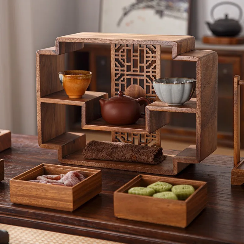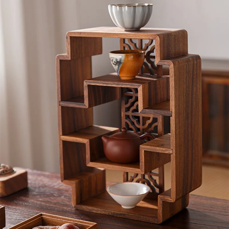 Walnut storage rack, small desktop tea cup, Bo Gu rack, new Chinese style tea room, coffee table, storage cup rack, display rack